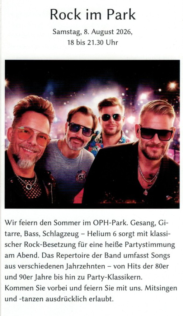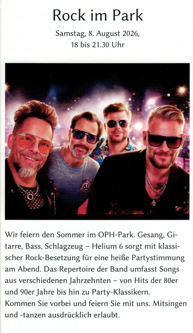 Die Musikpicknicks finden 5 x im Sommer zu den oben genannten Terminen jeweils Sontags von 11:00 bis 14:00 Uhr statt. Am 08.08.2026 findet unser Musikpicknick am Samstagabend ab 18:00 Uhr bis 22:00 Uhr statt. Der Eintritt ist frei. Es tritt jeweils eine andere Band auf.